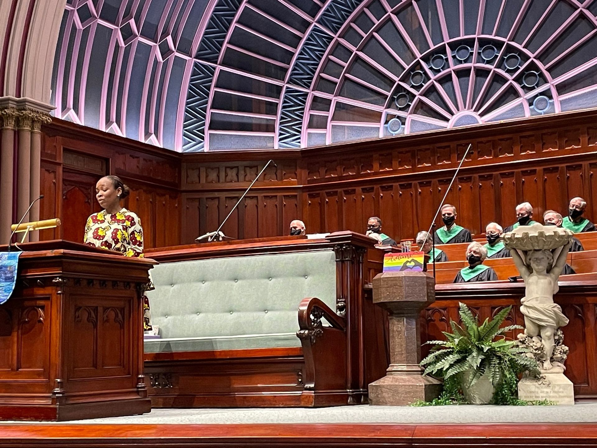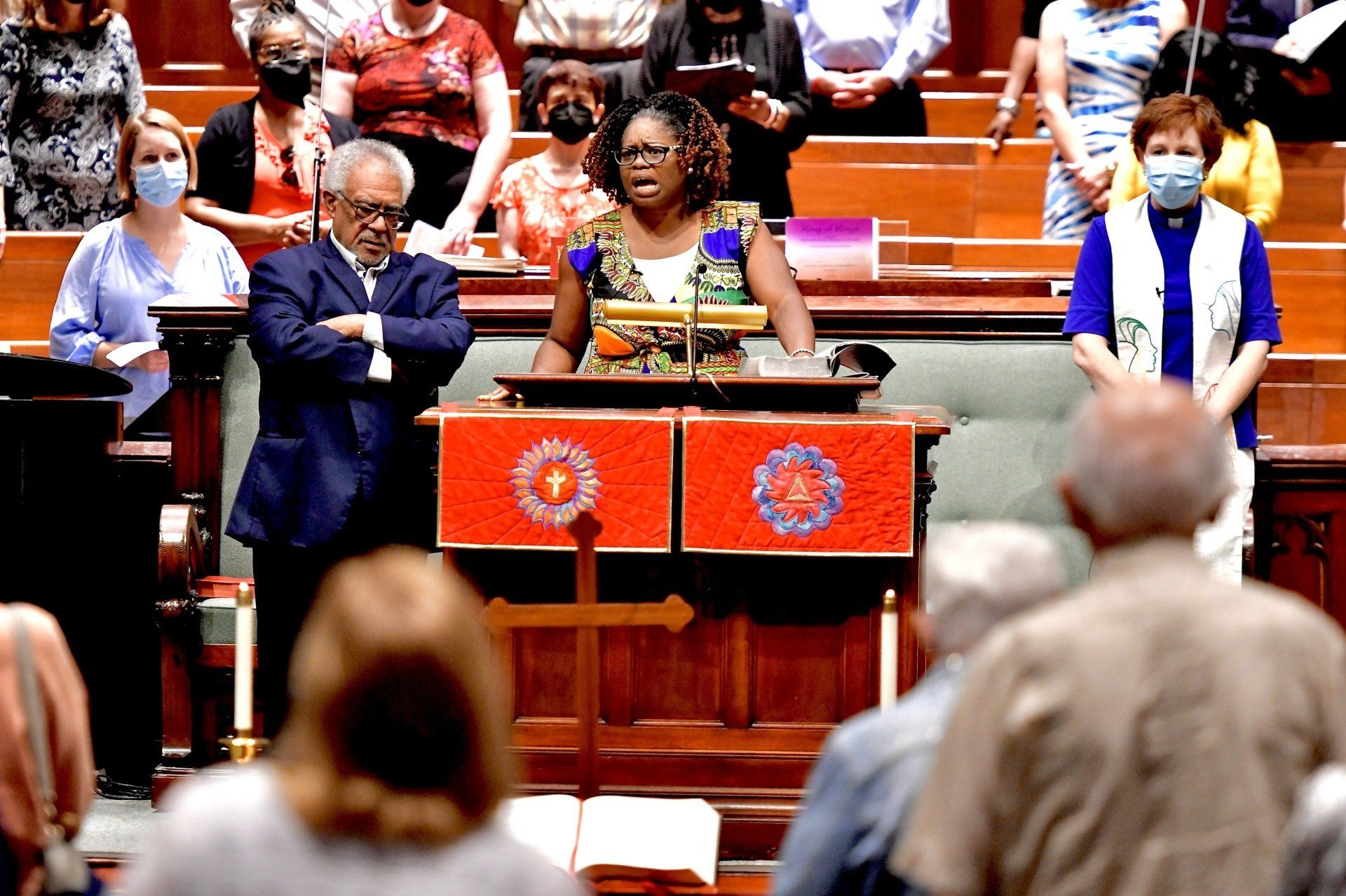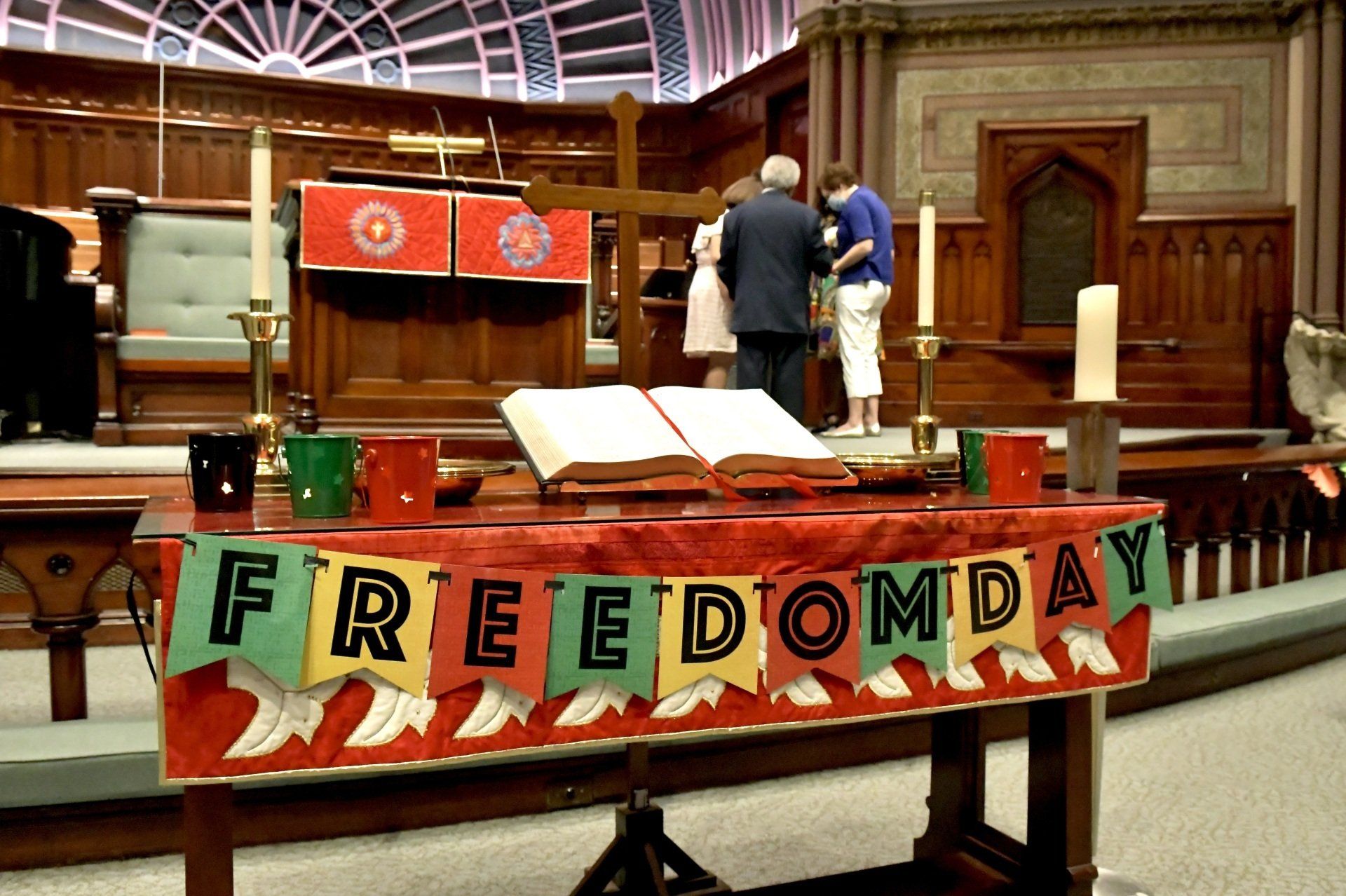 On June 18-19, 2022, Grace UMC partnered with New Horizons UMC for a 2-day community event honoring Juneteenth and the 75th anniversary of Jackie Robinson breaking the color barrier in Major League Baseball. On Saturday, we held a family-friendly block party and BBQ at New Horizons with music from Pastor Nick Savage's jazz quartet and free food courtesy of Salem UMC's Holy Smokers. On Sunday, Grace hosted the second annual combined Juneteenth worship service with New Horizons, featuring music from the combined choirs and guest preacher Rev. Dr. Dietra Wise Baker, Assistant Professor of Contextual Education and Community Engagement and Director of Contextual Education at Eden Seminary.
